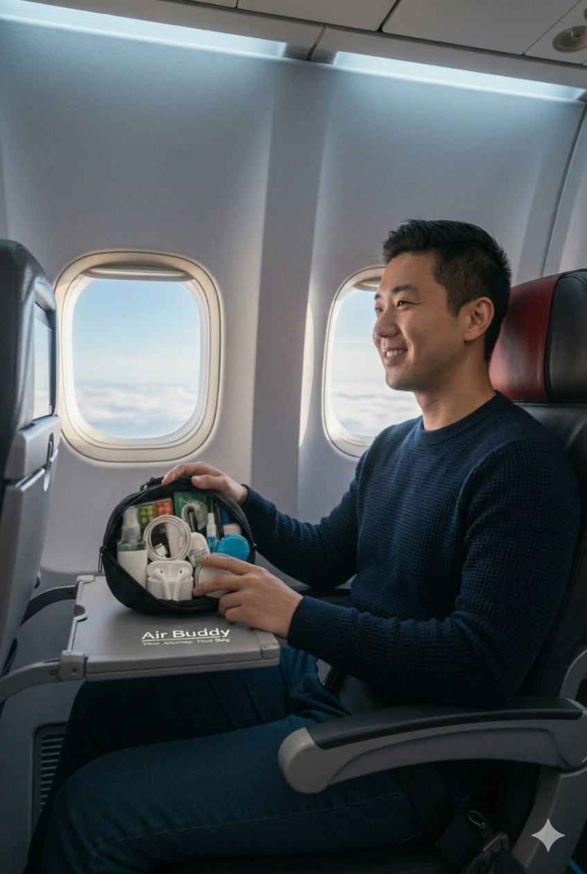 Our signature bag was made with every traveler in mind. Mid-flight rummaging to find your stowed away items can be challenging. For your next trip, travel with the Air Buddy and trust that all your essentials will be just a reach away.